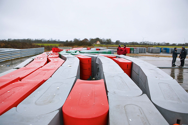 회색 텍프로는 좀 더 표면이 단단하다. 빨간 텍프로처럼 속은 비어있지는 않고, 조금 물렁한 폼이 들어있으며 내부에 철로 된 벽이 매립되어 있어서 차량이 관통하는 것을 방지한다.